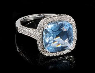 115. Bague sertie d'une topaze bleue taille coussin carrée (env. 6,5...