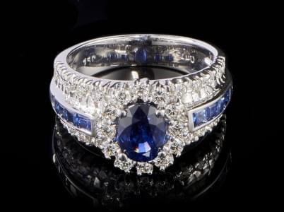 119. Bague sertie d'un saphir taille ovale (env. 1,2 ct) entouré de d...