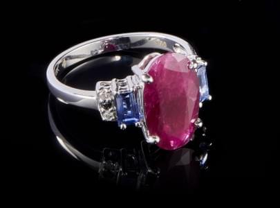 127. 5487*Bague sertie d'un rubis taille ovale (2,74 ct) épaulé de sa...