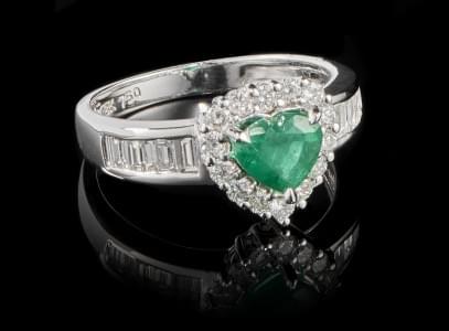 128. Bague sertie d'une émeraude taille cœur (env. 0,7 ct) entourée d...