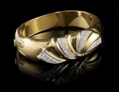 134. Bracelet jonc ouvrant rehaussé de pavages de diamants (env. 1 ct...