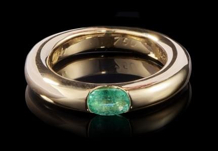 143. Cartier, Ellipse, bague jonc sertie d'une émeraude taille ovale...