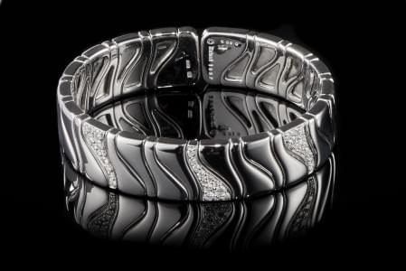 147. Marina B, bracelet jonc stylisé ouvert serti de diamants