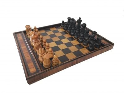 4109. Echiquier et damier avec jeu anglais, XIXe s
