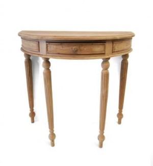 Bois au naturel, marbre blanc et galerie de laiton, H 83 cm