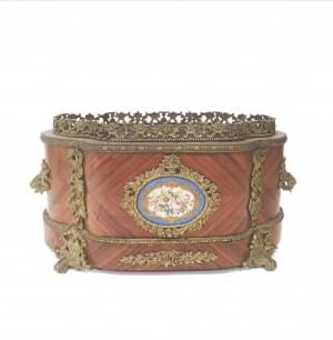 Bois de rose, bronze et plaques de porcelaine émaillée, 23x40x26...