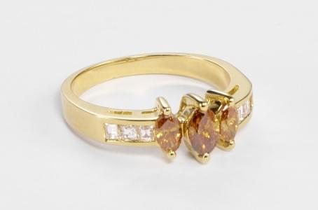 3220. Bague-anneau sertie de trois diamants cognac taille navette épau...