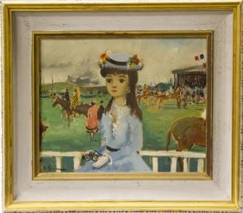 Jeune femme au champ de courses, huile sur toile, signée G.Simon...