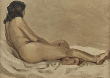 Nu de dos, huile sur papier marouflée sur toile, signée, 70x46 c...