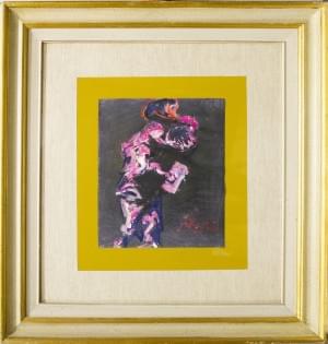Chanteur au microphone, technique mixte sur toile, 33x27 cm