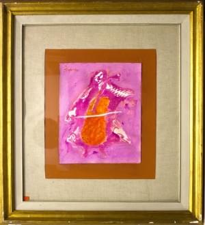 Joueur de violoncelle, technique mixte sur toile marouflée sur c...