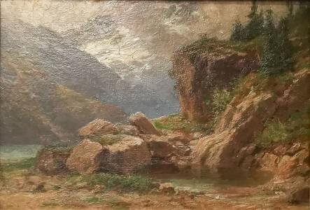Paysage rocheux, huile sur toile marouflée sur carton, 35x23 cm