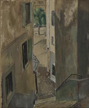 Escalier dans une ruelle, huile sur toile, monogrammée et datée...