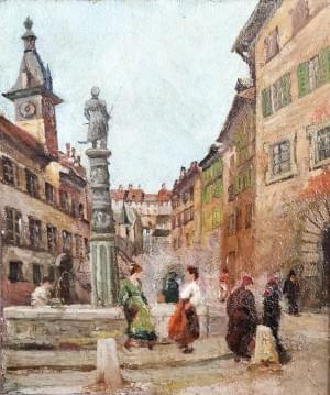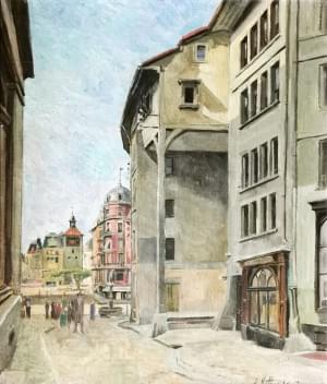 Place de la Palud à Lausanne, huile sur toile, 58x44 cm