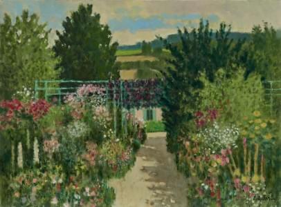 Jardin fleuri à Giverny, huile sur toile, signée, 54x73 cm