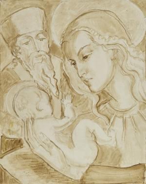 Portrait d'enfant, piétà et le bon samaritain, trois études, hui...