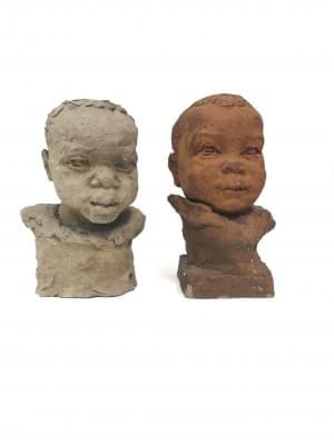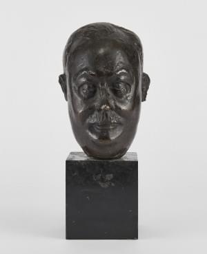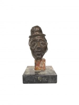 Tête de clown, bronze à patine brune, signature non identifiée,...