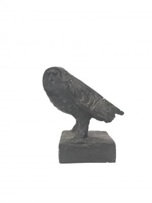 Chouette, résine à patine verte, H 34 cm