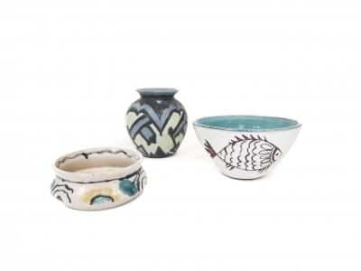 Trois vases, céramique émaillée, H de 5 à 13 cm