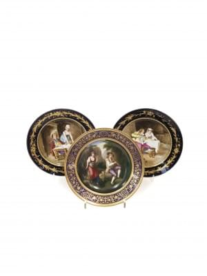 3893. Trois assiettes à décor de scènes galantes