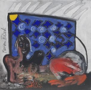 Le réveil, acrylique sur toile, signée et datée 78, 73x60 cm