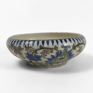 Céramique émaillée à décor de motifs bleus et verts, D 25 cm