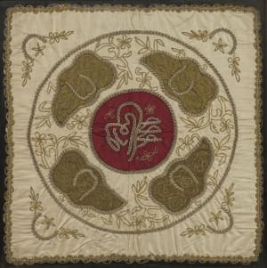 L'un à motif d'oiseaux et poissons, l'autre à décor d'un monogra...