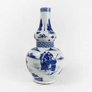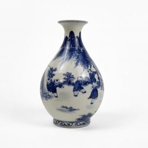 Porcelaine émaillée bleu blanc à décor d'un paysage animé de per...