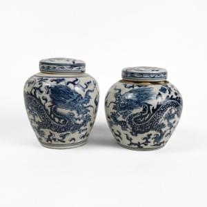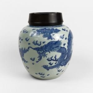 Porcelaine émaillée bleu blanc à décor de phénix, H 12 cm