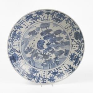 Porcelaine émaillée bleu banc à décor de personnages, D 32 cm