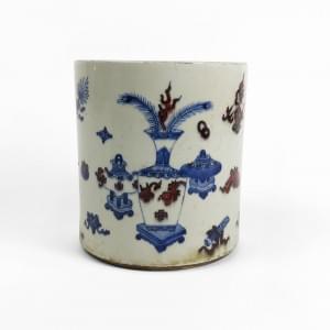 Porcelaine émaillée bleu blanc et rouge de fer à décor d'ustensi...