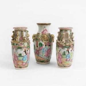 4641. Trois petits vases en Canton, Chine, XIXe s