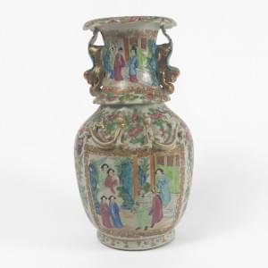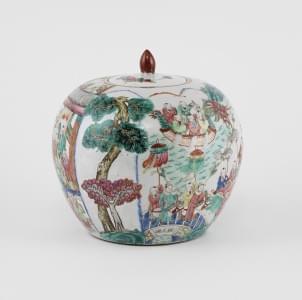 Porcelaine émaillée polychrome à décor de scènes animées, H 32 c...