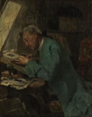 Le vendeur de lunettes, huile sur panneau, 20x17 cm