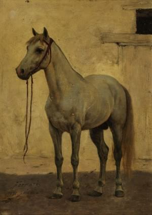 Chevaux au bord de la Tamise, huile sur toile, signée, 43x58 cm