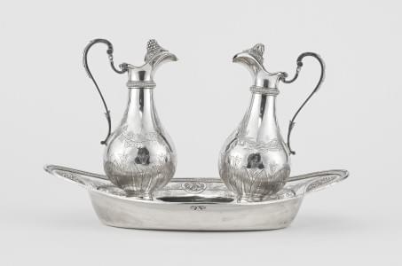 391. Paire de burettes sur présentoir d'époque Restauration à motif r...