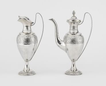 Argent, comprenant: Samovar, théière, cafetière, verseuse, crémi...
