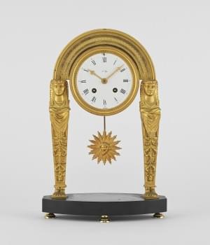 Bronze doré, cadran signé L’Epée, H 34 cm
