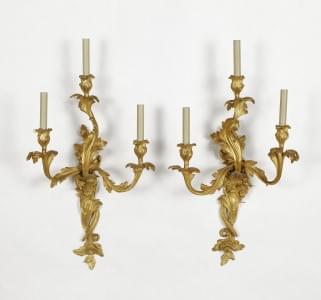 421. Paire de grandes appliques à trois lumières de style Louis XV