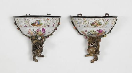416. Cartel d'applique et sa console, début XVIIIe s, cadran singé Fo...