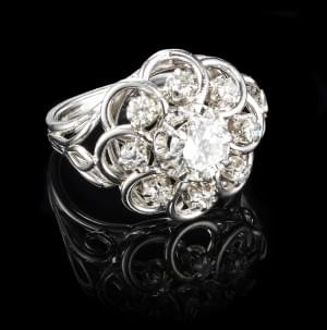 287. Bague sertie d'un diamant (env. 0,8 ct) entouré de huit diamants...