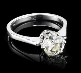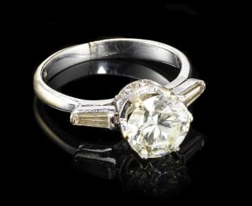 291. Bague solitaire sertie d'un diamant (env. 1,6 ct) épaulé de deux...