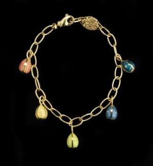 309. Fabergé, bracelet à maille ovale retenant cinq œufs émaillés en...