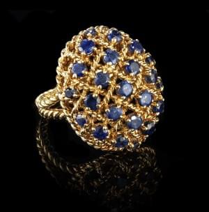 Serti de pierres précieuses et fines telles que des saphirs, éme...