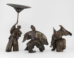 Bronze niellé d'argent et de cuivre, H 58, 32 et 32 cm