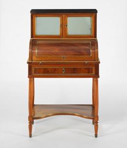 Deux tiroirs, placage de bois fruitier et bronze doré, 82x128x55...