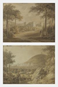 Deux vues du château de Weilburg, lavis sur papier datés 1828, 4...