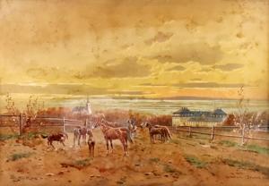 Aquarelle signée, école hongroise, 14x10 cm. Provenance Habsbour...