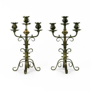 4215. Paire d'importants candélabres à 6 lumières tripodes de style Em...