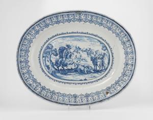 4291. Plat ovale à décor d'une chasse, d'après Tempesta, Moustiers, ma...